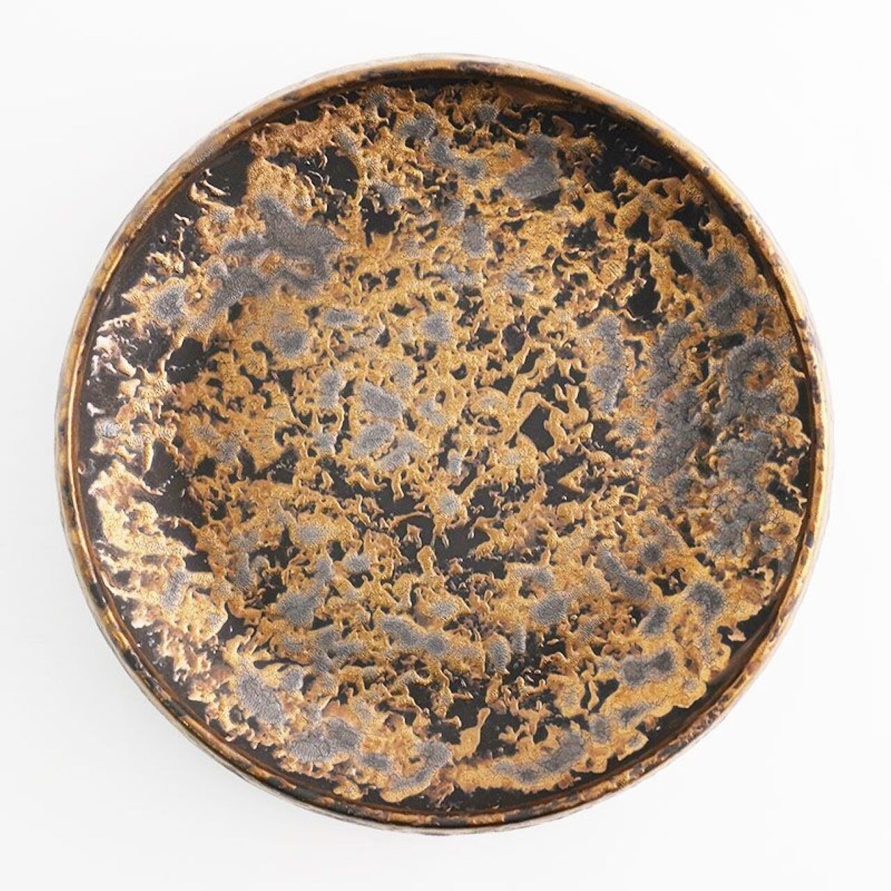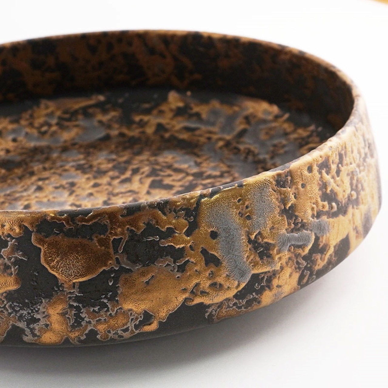 黒地に金彩を叩き込んだ大胆なデザイン。角度により変幻自在に表情を変える景色が魅力。